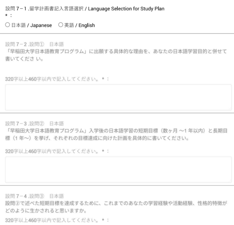 早稻田的別科申請中,讀書計劃書是固定三個提問。先來按看官方文件內容白話文解釋: